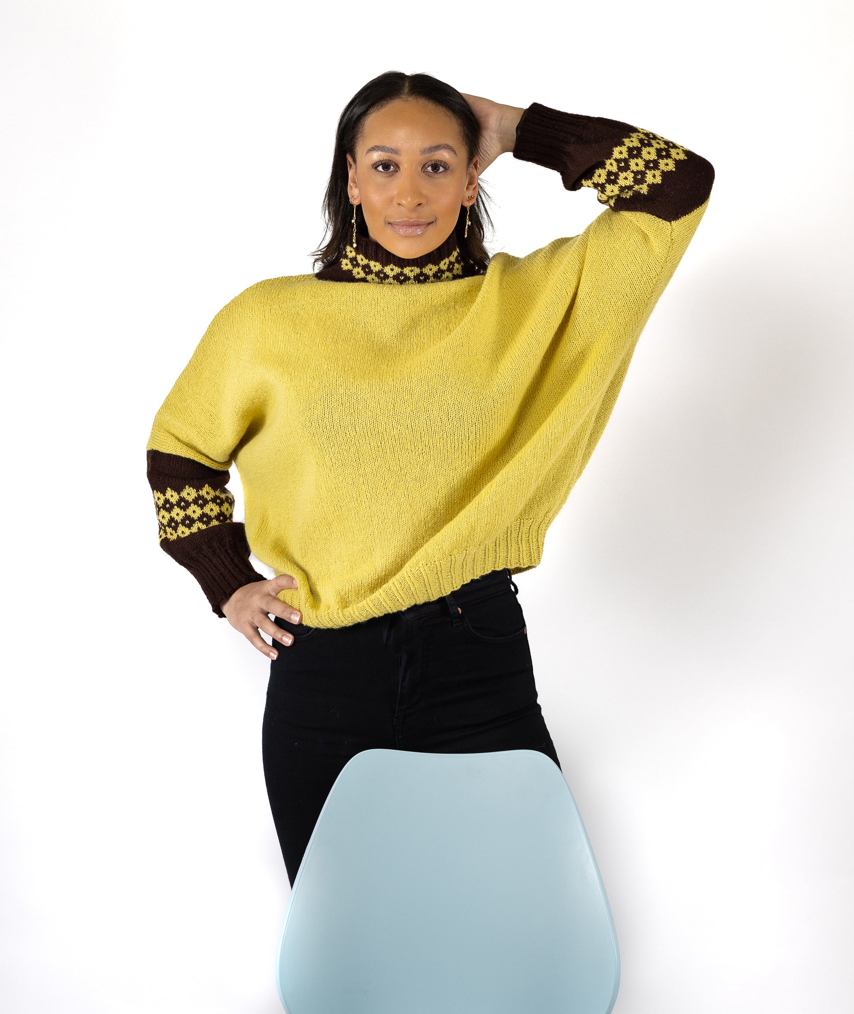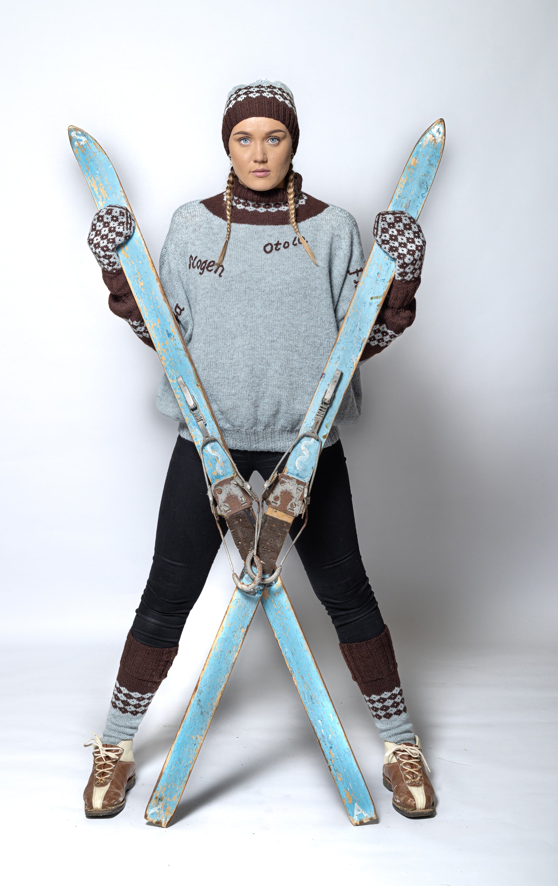 Anne Mari Akslen in 1958. Opnieuw ontworpen door Hjørundfjordstrikk in 2022.