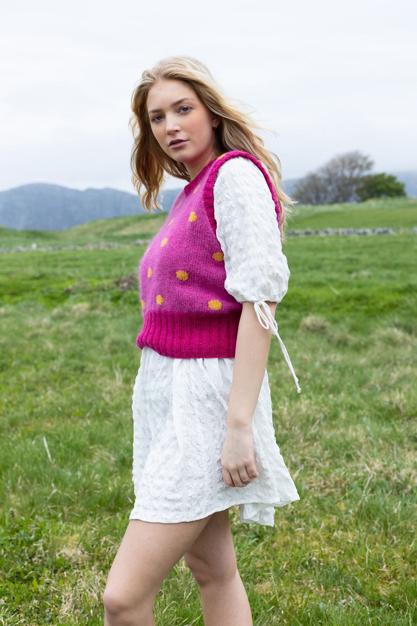 Strikkast i ein tråd Finull og ein tråd Alpaca Silk.