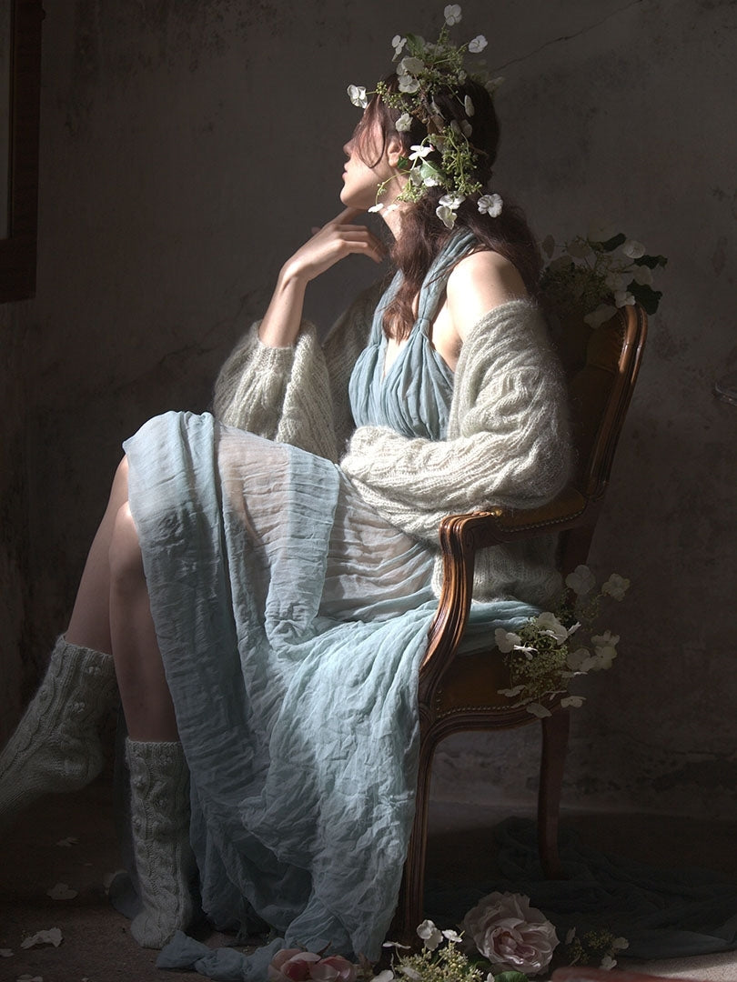 50 % alpakka Rauma Plum, 70 % kid mohair og 30 % polyamid